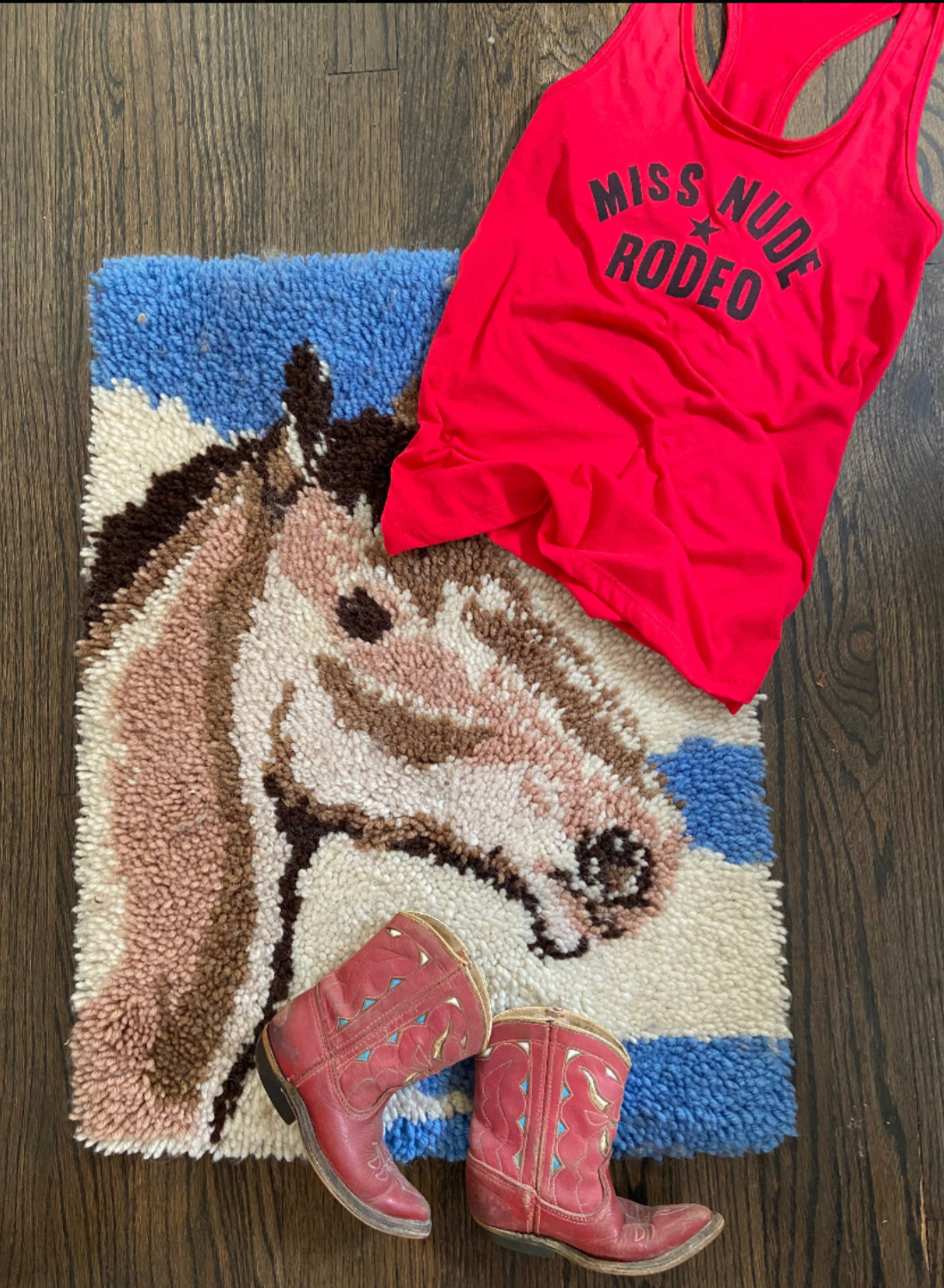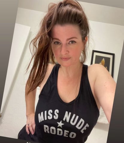 grab a rockin Miss Nude Rodeo racerback tank top. or get one with a horseshoe. guaranteed to bring good luck. no, really.